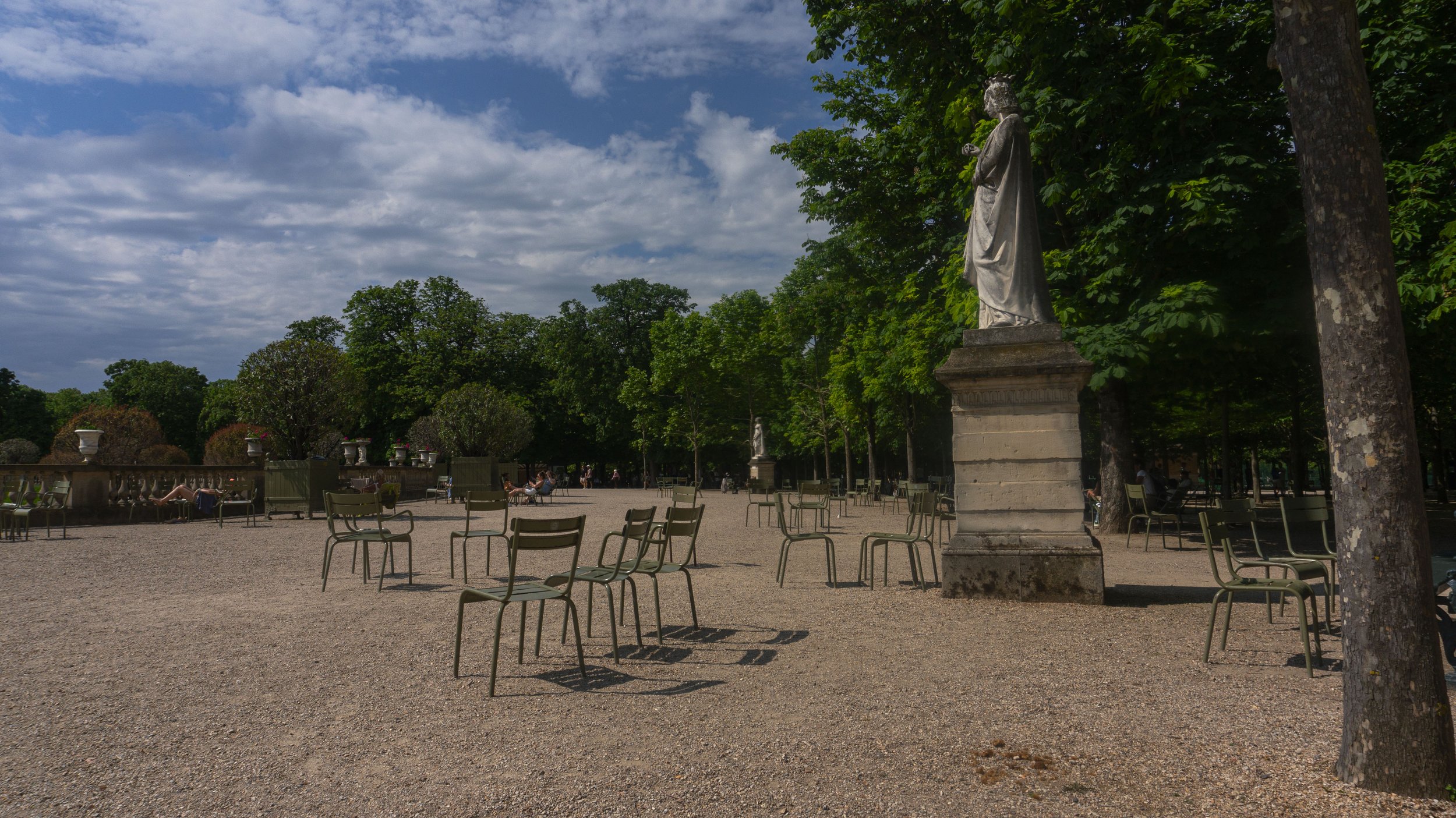 My reasoning for choosing Jardin du Luxembourg was that each day, I would eat breakfast there with an espresso from the kiosk in the park. I spent hours in the morning sun watching the flow of people as I sketched. I noticed each day I arrived; the chairs were laid out differently than the day before. Yet, although I would spend quite a long time there each morning, I never noticed them moving.